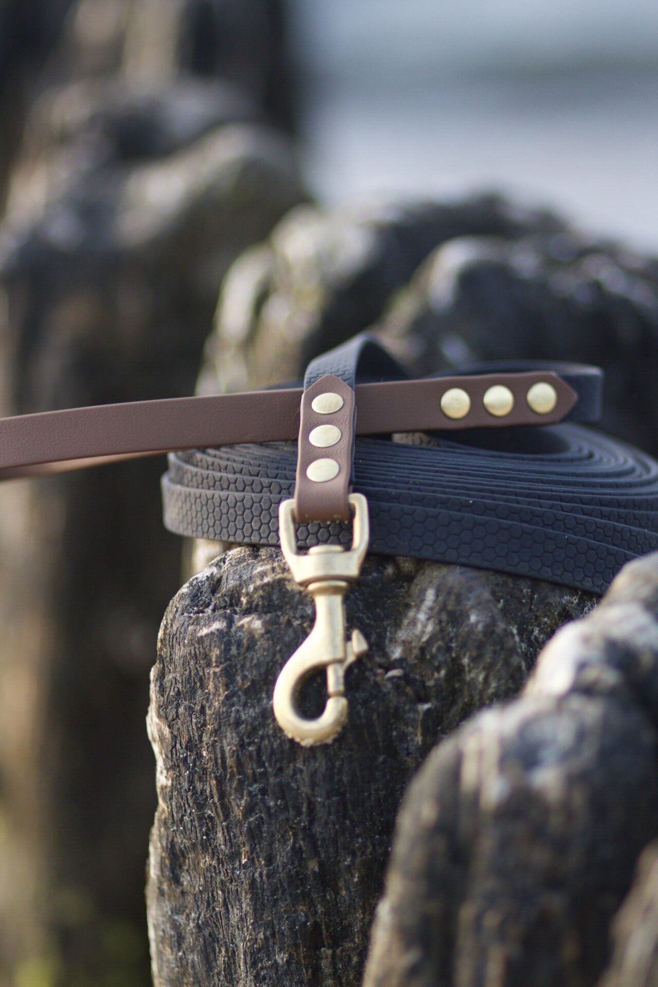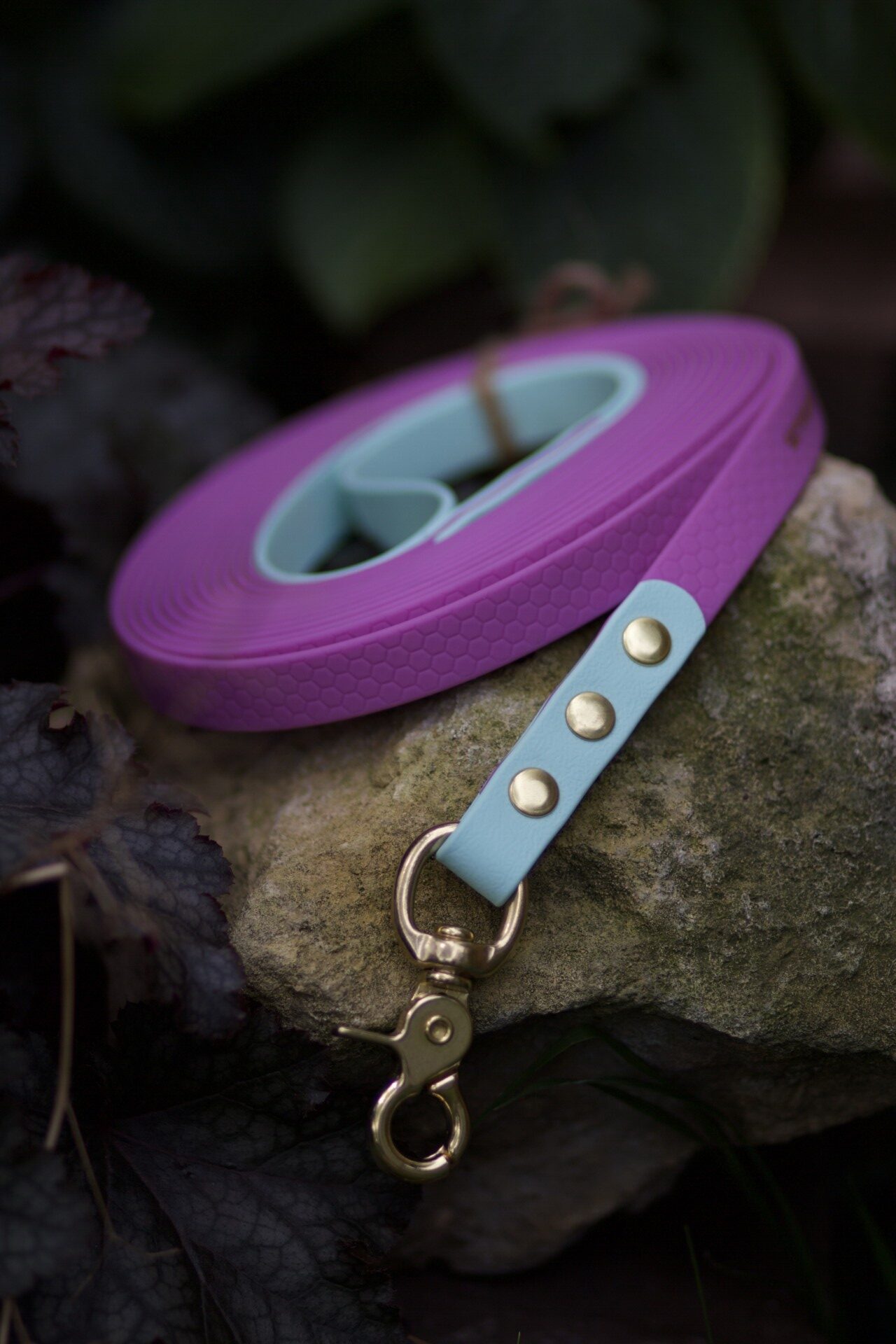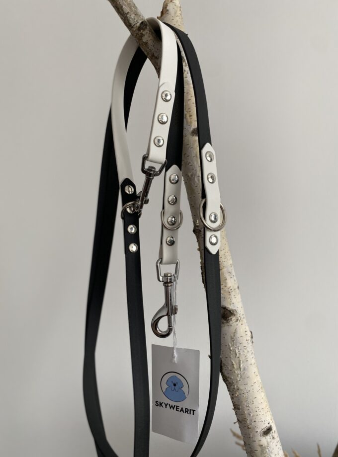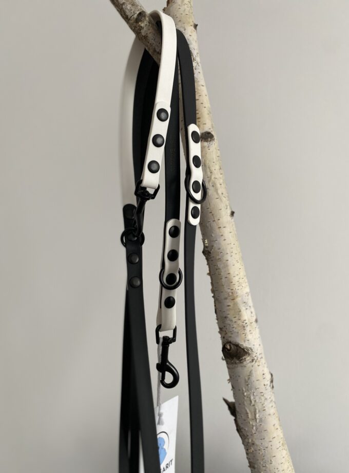 Linka z wodoodpornej taśmy HEXA (plaster miodu) nie chłonie wody i błota, nie zaciąga się. Nie plącze się też psu wokół łap i pomiędzy krzakami. Nie wplątuje się w dłuższą sierść oraz nie zbiera spacerowych skarbów typu liście, igły, małe patyczki itd.
