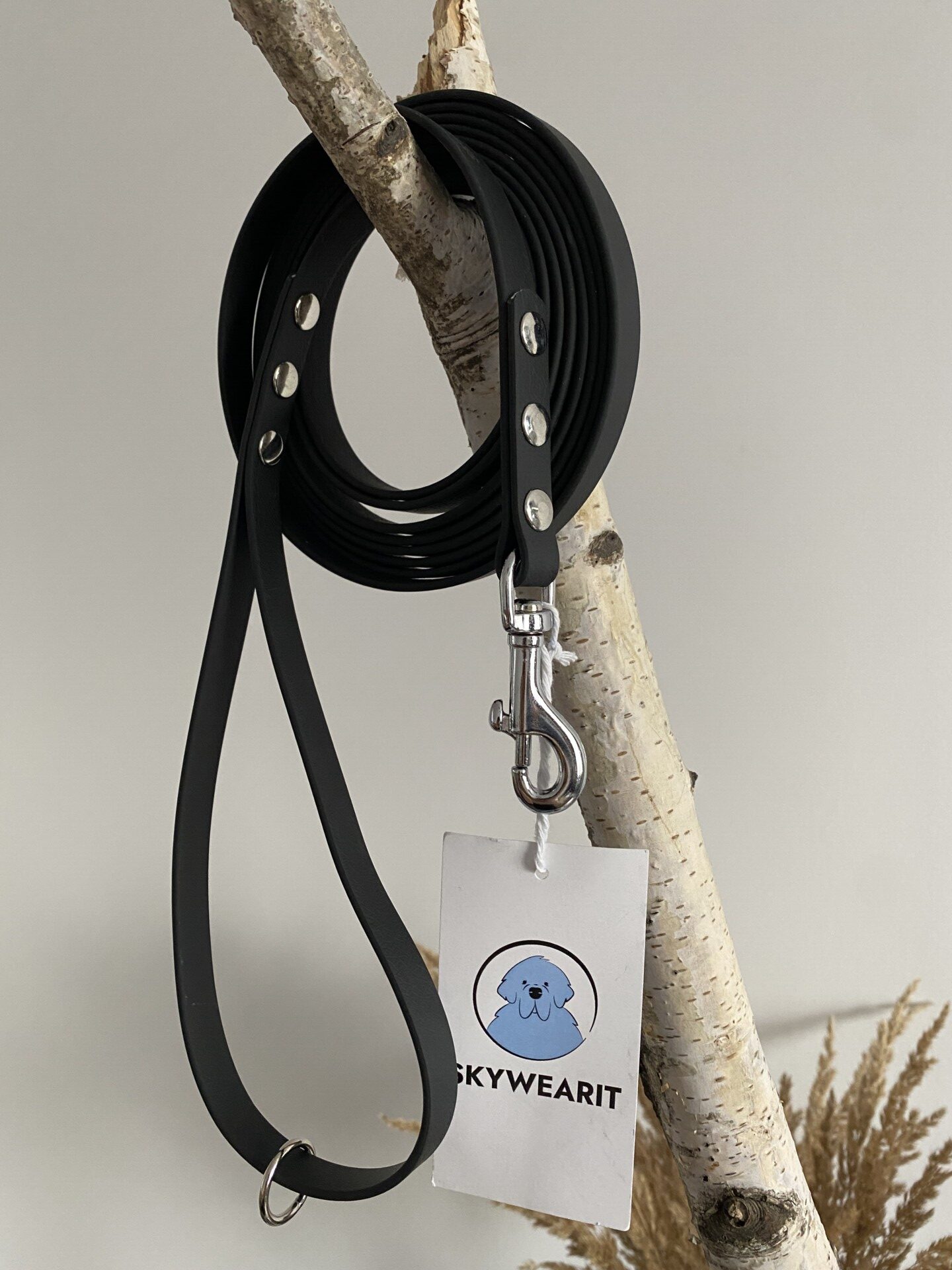 Smycz z wodoodpornej taśmy TPU/PVC nie chłonie wody i błota, nie przeciera się i nie zaciąga. Nie plącze się też psu wokół łap i pomiędzy krzakami. Nie wplątuje się w dłuższą sierść oraz nie zbiera spacerowych skarbów typu liście, igły, małe patyczki itd.
