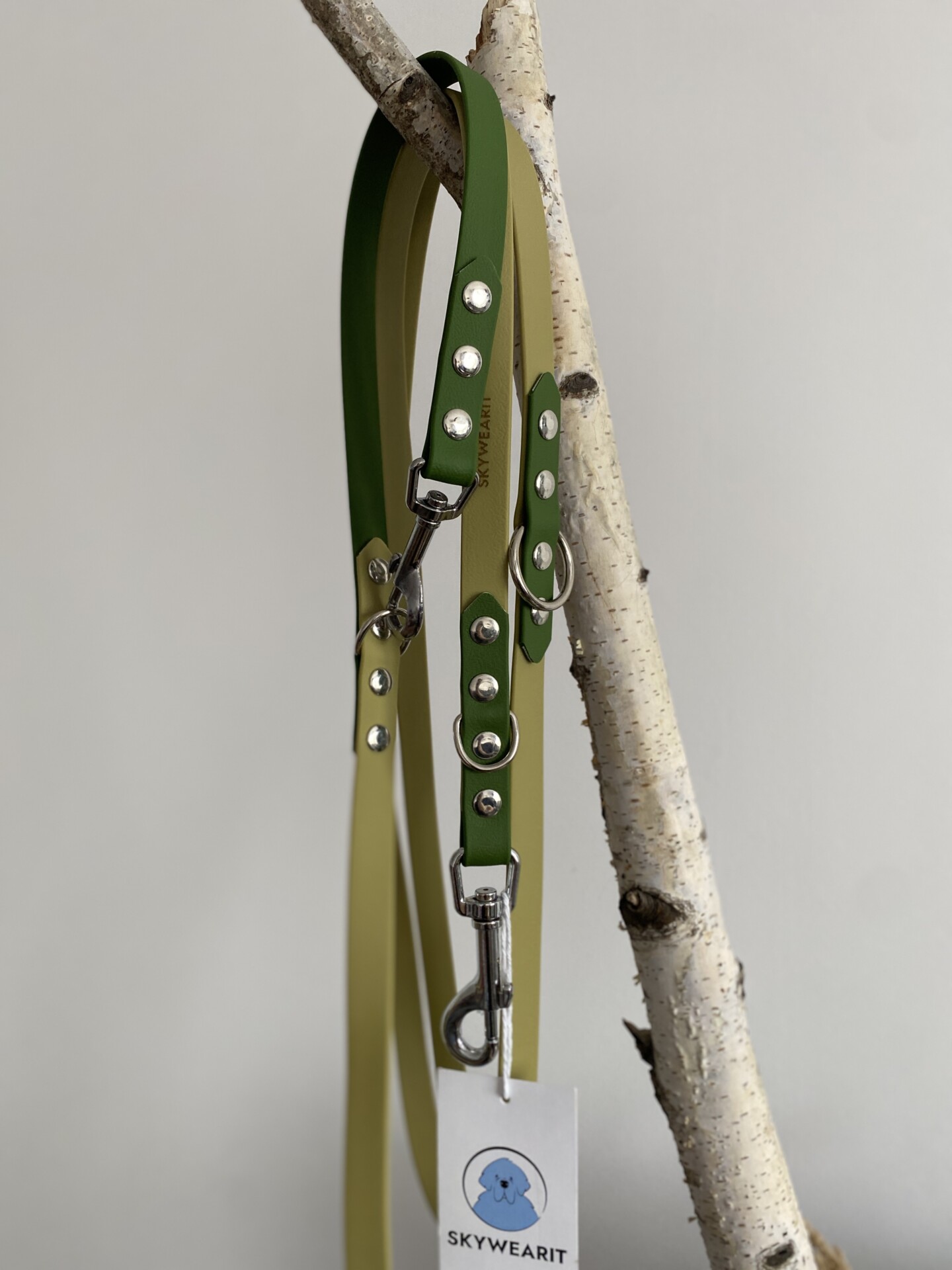 Smycz przepinana, to idealne rozwiązanie dla każdego psiarza – posiada 3 opcje zmiany długości (można np. przełożyć ją przez ramię i mieć wolne ręce, skrócić lub wydłużyć kiedy jest taka potrzeba). Zbudowana jest z wodoodpornej taśmy, 2 karabińczyków oraz 3 kółek/półkółek, aby móc w każdej chwili wygodnie zmienić jej długość.